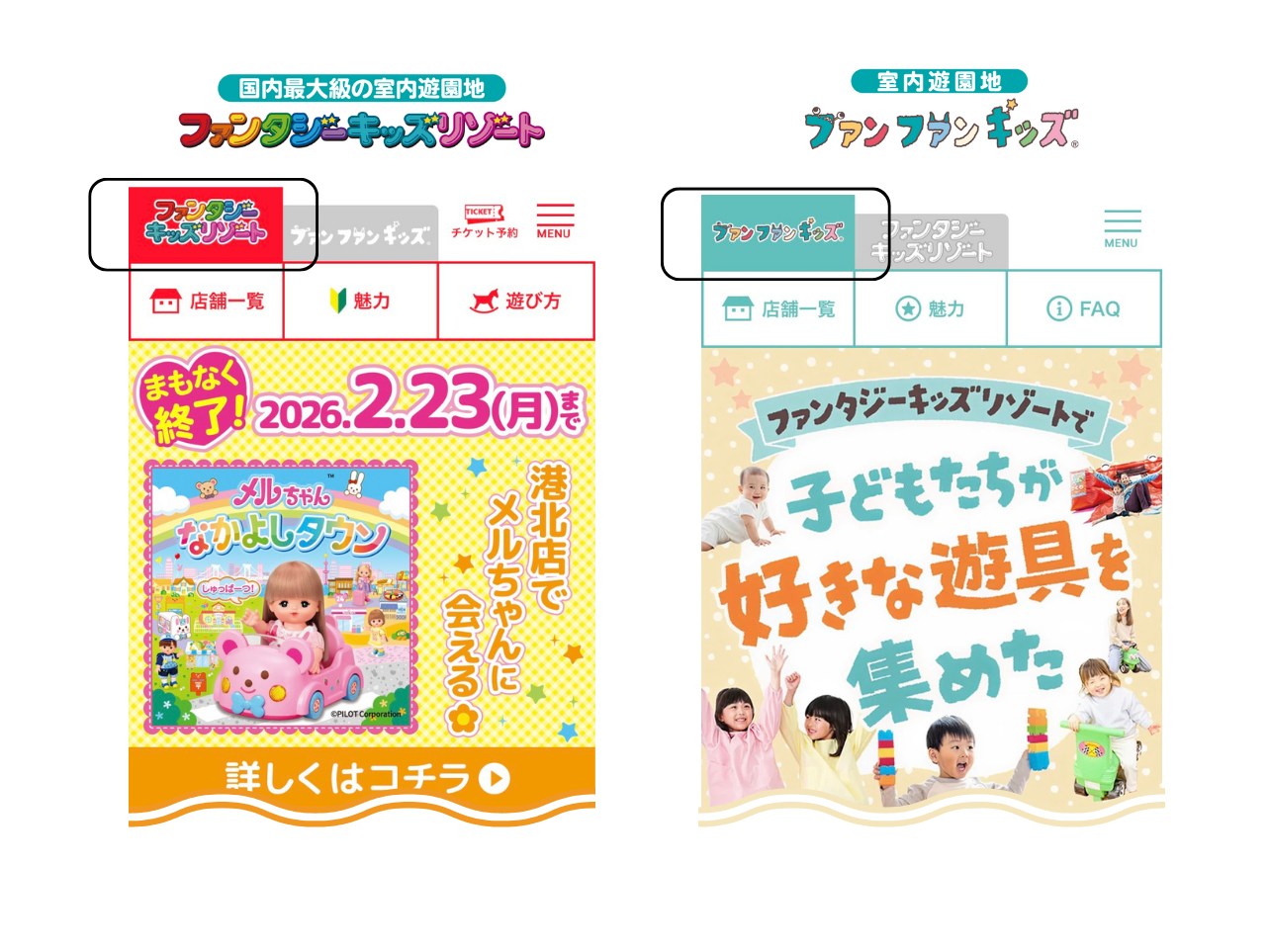 「ファンタジーキッズリゾート」と「ファンファンキッズ」のページをタブで分け、情報を探しやすく改善いたしました。