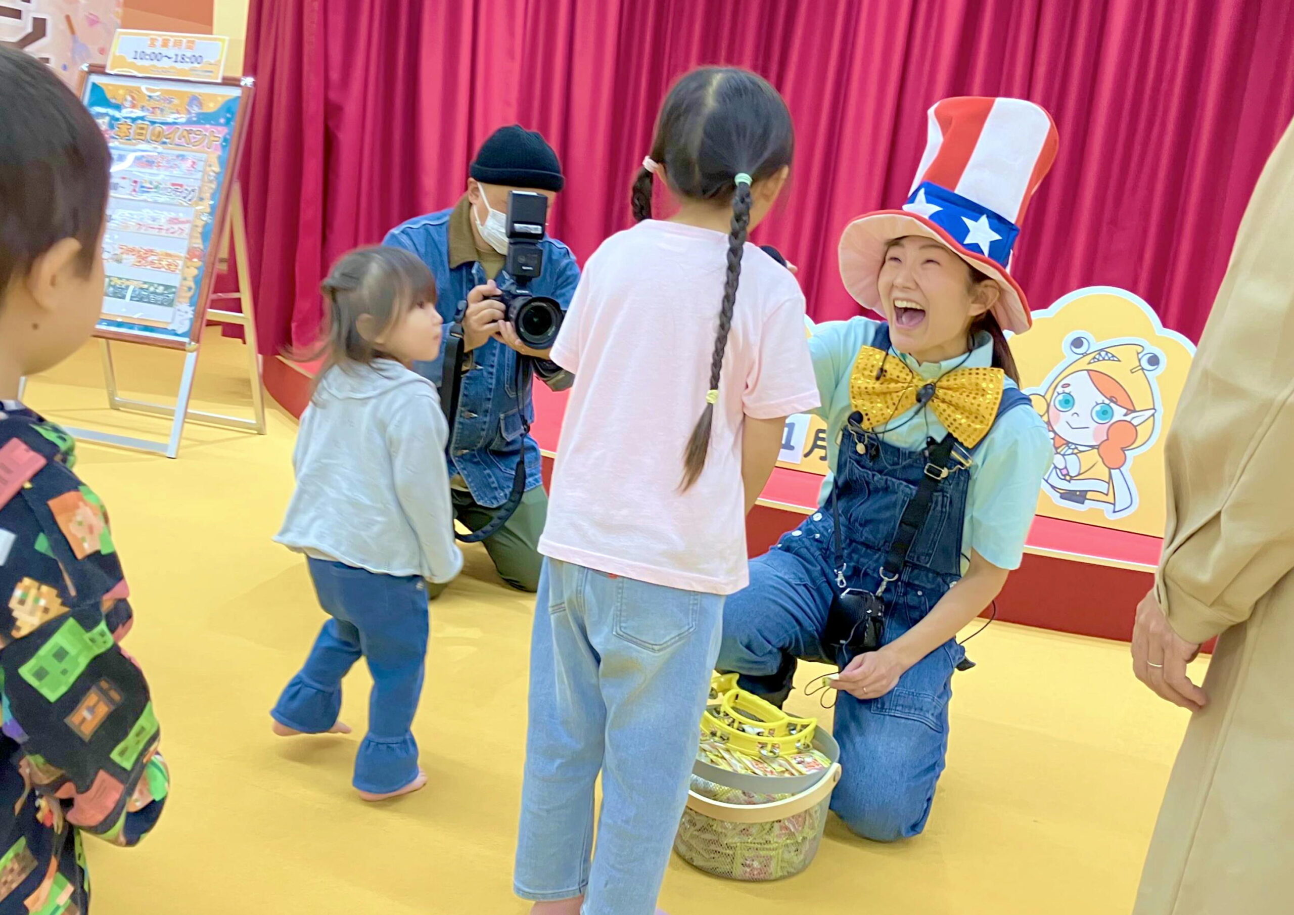 お店の中に登場するキャラクターのお姉さん・お兄さんと一緒に