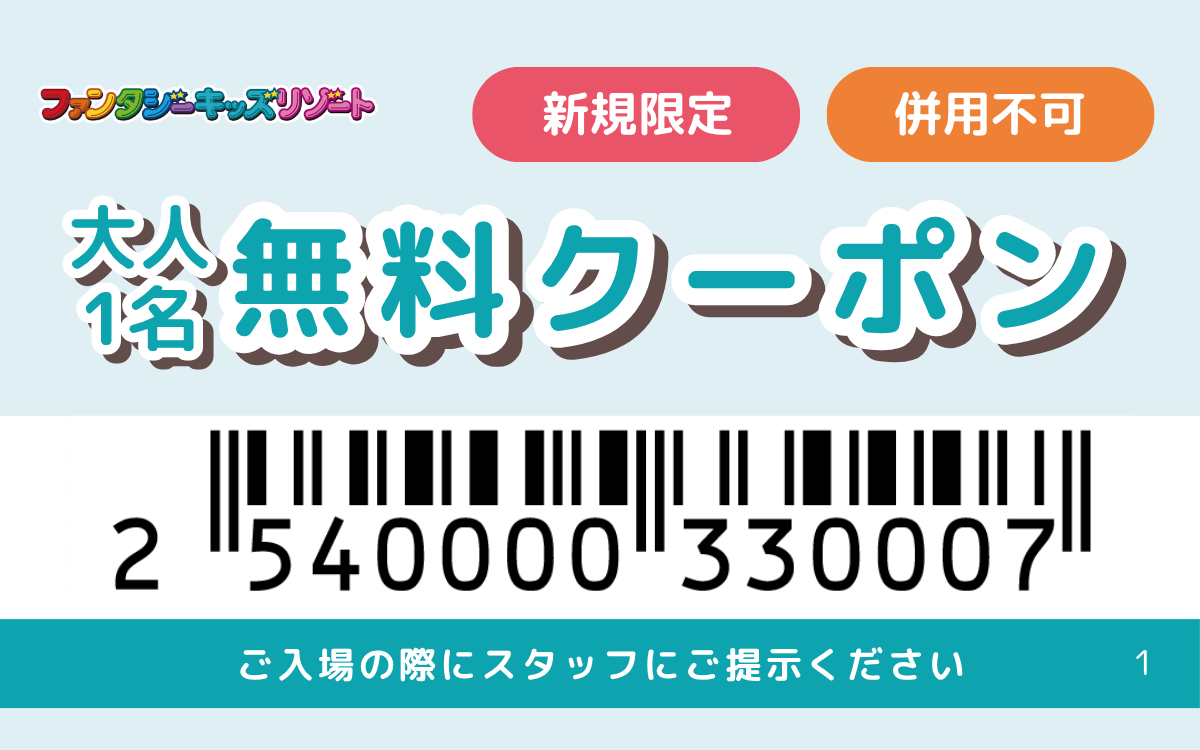 “新規限定”大人1名無料クーポン